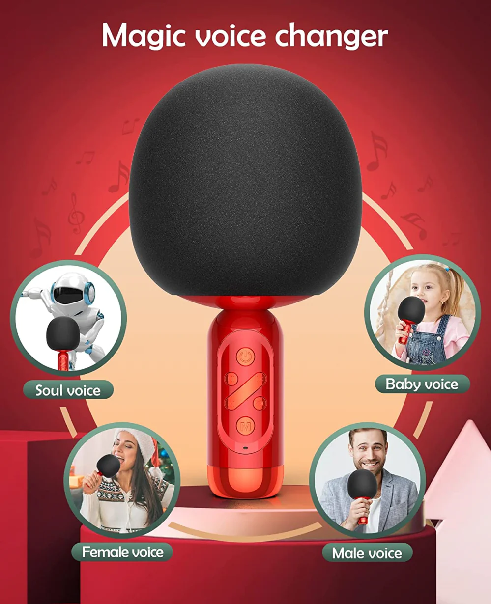 - Newly Upgraded Magic Voices– Wireless karaoke microphone can be converter four magic voice changer:baby voice,man voice,woman voice,soul voice. Different voice will give you different surprise and let you feel fun and laugh.